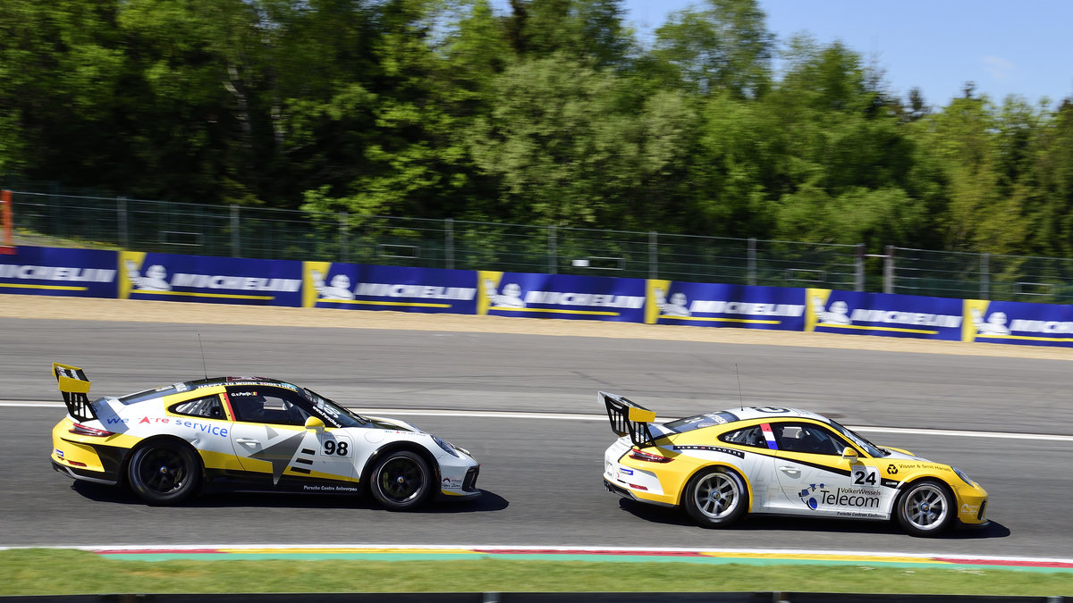 # 98 Glenn VAN PARIJS (BEL), Team: BELGIUM Racing gegen #24 Max VAN SPLUNTEREN (NLD)vom Team GP Elite Porsche GT3 Cup 991,Rahmenprogramm der FIA WEC 6h Spa Francorchamp. Gemeinsames Rennen der Porsche GT3 Cup Challenge Benelux, und des Porsche Carrera Cup France am 5. Mai 2018
