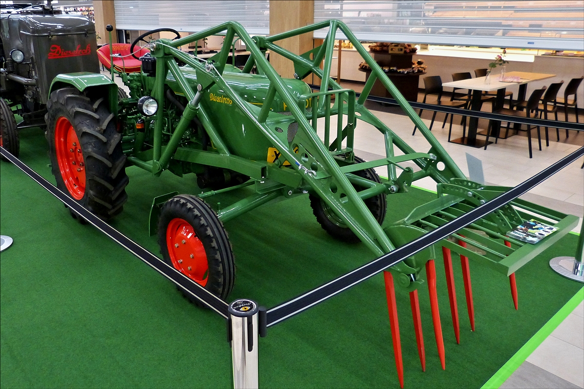 . Fendt F 12 HLX; Bj. 1958; Leistung 12 PS; 6 Gang Schaltgetriebe; ausgestellt im Hall eines Einkaufscentrums im Norden von Luxemburg. 08.05.2018