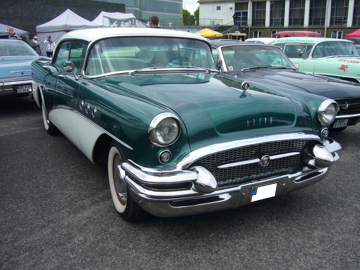 Buick Special 40 Riviera Hardtop Sedan des Modelljahres 1955. Der Special 40 war das Grundmodell des Buick Programms im Jahr 1955. Darüber rangierten der Super 50, der Century 60 und als Spitzenmodell der Roadmaster 70. Von dieser Karosserie- und Ausstattungsvariante verkaufte Buick 1955 155818 Fahrzeuge. Der Grundpreis lag bei US$ 2332,00 US$. Motorisiert ist dieser Wagen mit einem V8-motor, der aus 4324 cm³ Hubraum 188 PS leistet. Primers run am 10.05.2018 in Krefeld.
