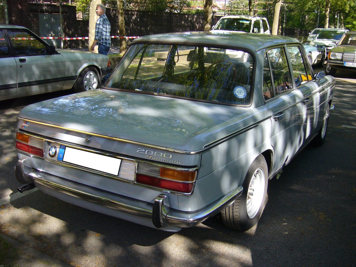 BMW 2000 Automatic. 1966 - 1972. Der 2000 war Hubraumtechnisch das Spitzenmodell, der sogenannten "Neuen Klasse". Der 100 PS leistende 4-Zylinderreihenmotor mit 1.990 cm³ Hubraum verhalf dem Auto zu einer Spitzengeschwindigkeit von 168 km/h. Bei seiner Markteinführung kostete dieser Wagen DM 11.475,00 in Grundausstattung. Motorworld Historicar Duisburg am 05.05.2018.