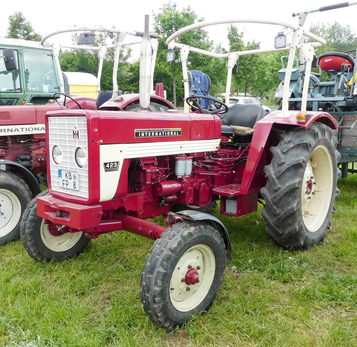=IHC 423 steht auf dem Ausstellungsgelände der Schlepperfreunde Auenberg, Mai 2018