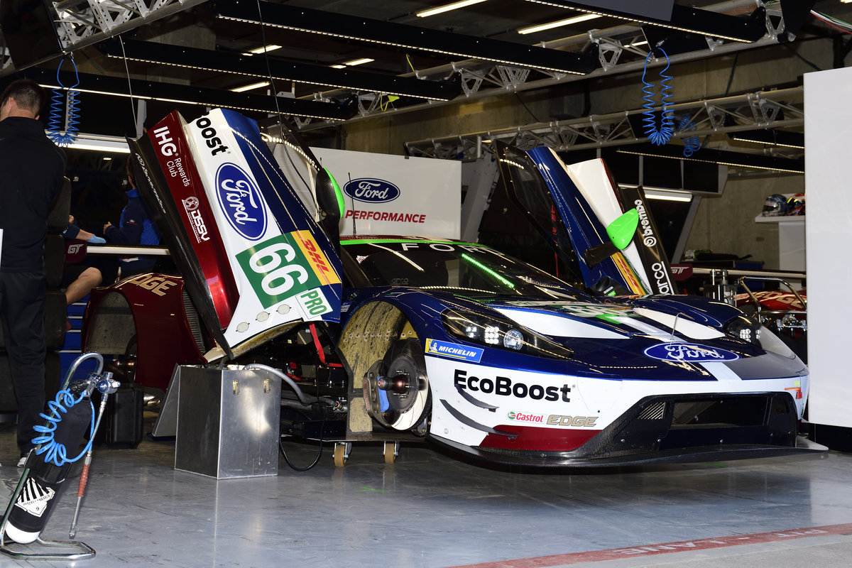 In der Box (Pitwalk) LM GTE Nr.66 Pro, Chip Ganassi Racing, Ford GT, Stefan Mücke, Olivier Pla & Billy Johnson. Langstrecken-WM (FIA WEC) – Sechs Stunden von Spa-Francorchamps 5.Mai 2018