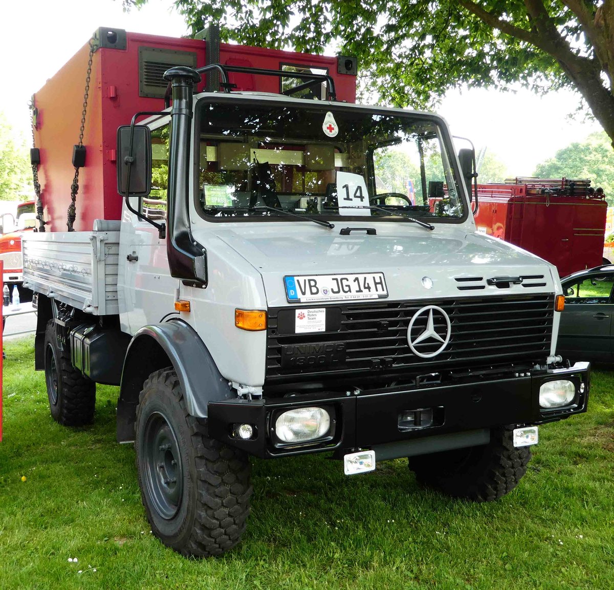 =MB Unimog 1300 des DRK, konnte bei der Gemeinschaftsveranstaltung von DRK Fulda und dem Feuerwehrmuseum Fulda bewundert werden. Die zweitägige Veranstaltung "Roter Sommer" erinnert an die Bedeutung der vielen Hilfsorganisationen. Mai 2018