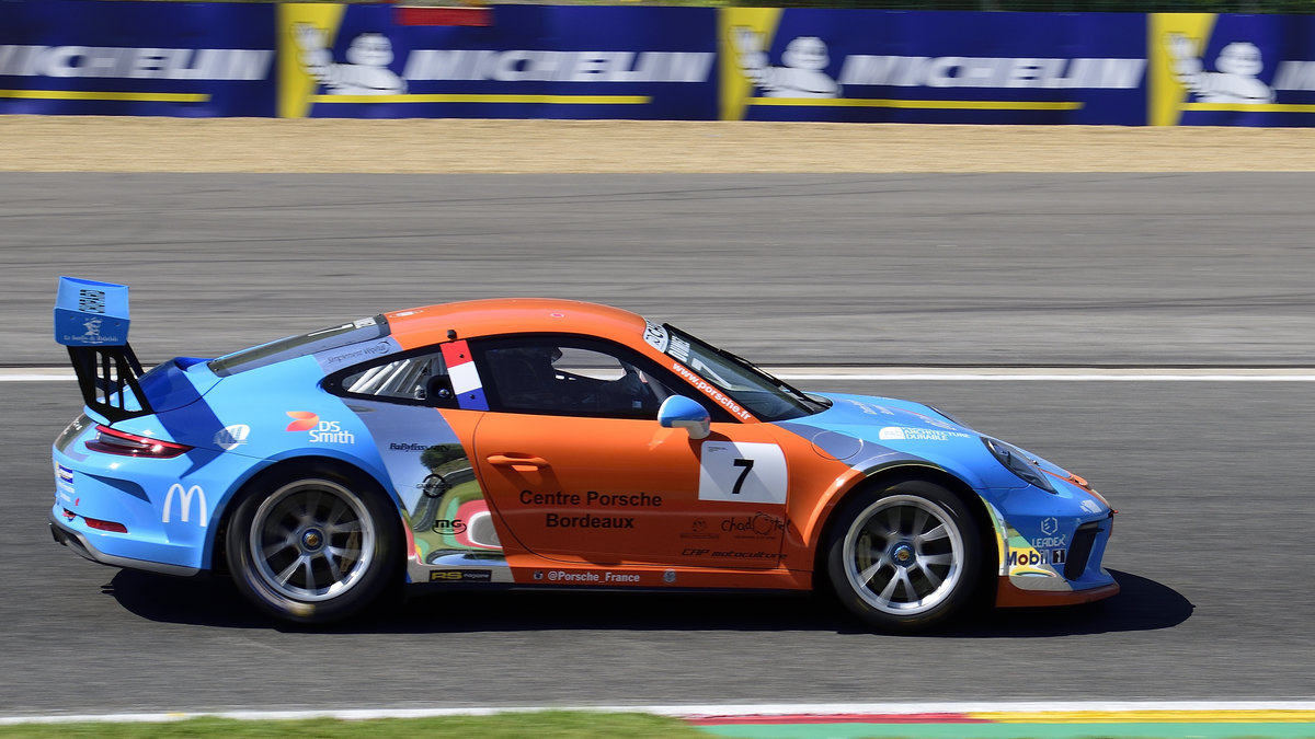Mitzieher der #7 Sébastien DUMEZ (FRA) Team 85 Bourgoin Racing; Porsche GT3 Cup 991, Rahmenprogramm der FIA WEC 6h Spa Francorchamp. Gemeinsames Rennen der Porsche GT3 Cup Challenge Benelux, und des Porsche Carrera Cup France am 5. Mai 2018