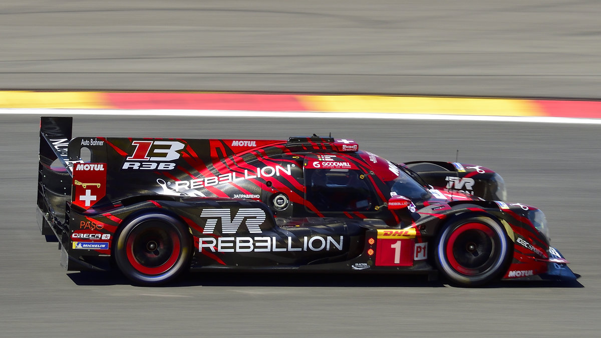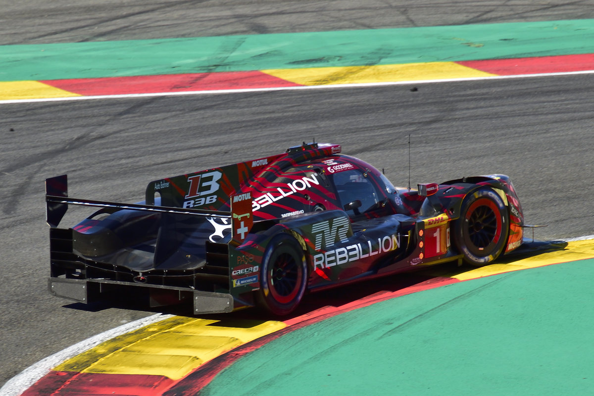 Oreca-Prototyp, Rebellion R-13 (Gibson) LMP1 mit der Startnummer 1, Fahrer: André Lotterer, Neel Jani & Bruno Senna, Mitzieher beim Langstrecken-WM (FIA WEC) – Sechs Stunden von Spa-Francorchamps 5.Mai 2018