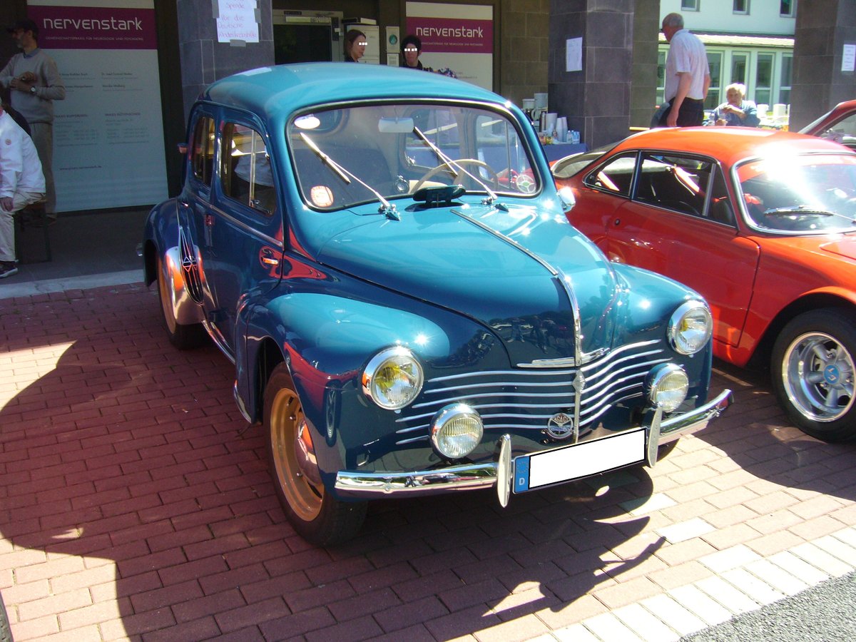 Renault 4CV. 1946 - 1961. Der 4CV wurde heimlich während der deutschen Beatzung des Werkes Billancourt konstruiert. Der im Heck verbaute 4-Zylinderreihenmotor hat einen Hubraum von 741 cm³ und leistet, je nach Modelljahr des Fahrzeuges zwischen 17 PS und 26 PS. Prinz-Friedrich Oldtimertreffen am 06.05.2018.