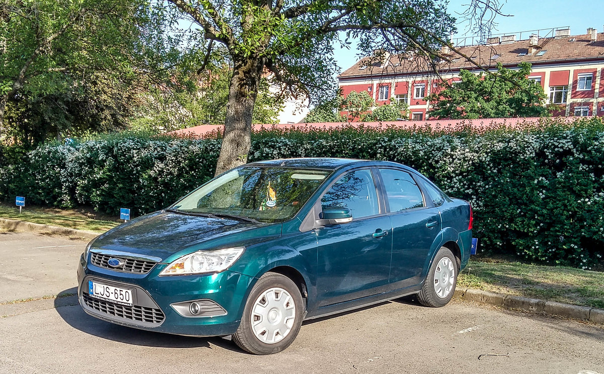 Ford Focus Mk2 Sedan in einer seltenen grüne Farbe. Aufnahmezeit: 27.04.2018