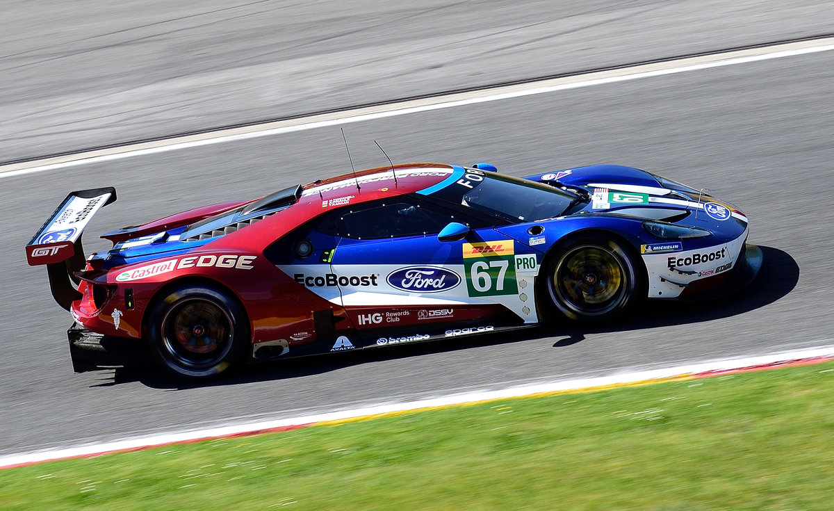 Mitzieher #67, Chip Ganassi Racing mit Ford GT / GTE der Fahrer: Andy Priaulx, Harry Tincknell & Tony Kanaan. Langstrecken-WM (FIA WEC) – Sechs Stunden von Spa-Francorchamps 5.Mai 2018