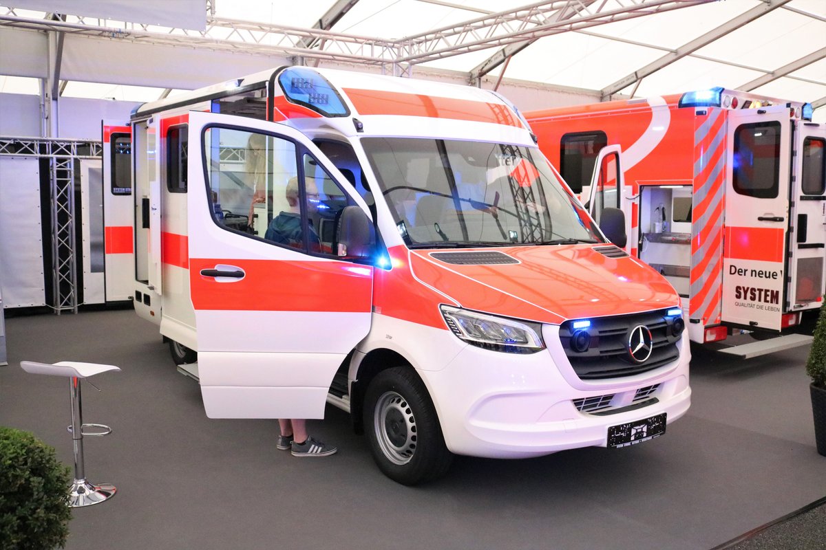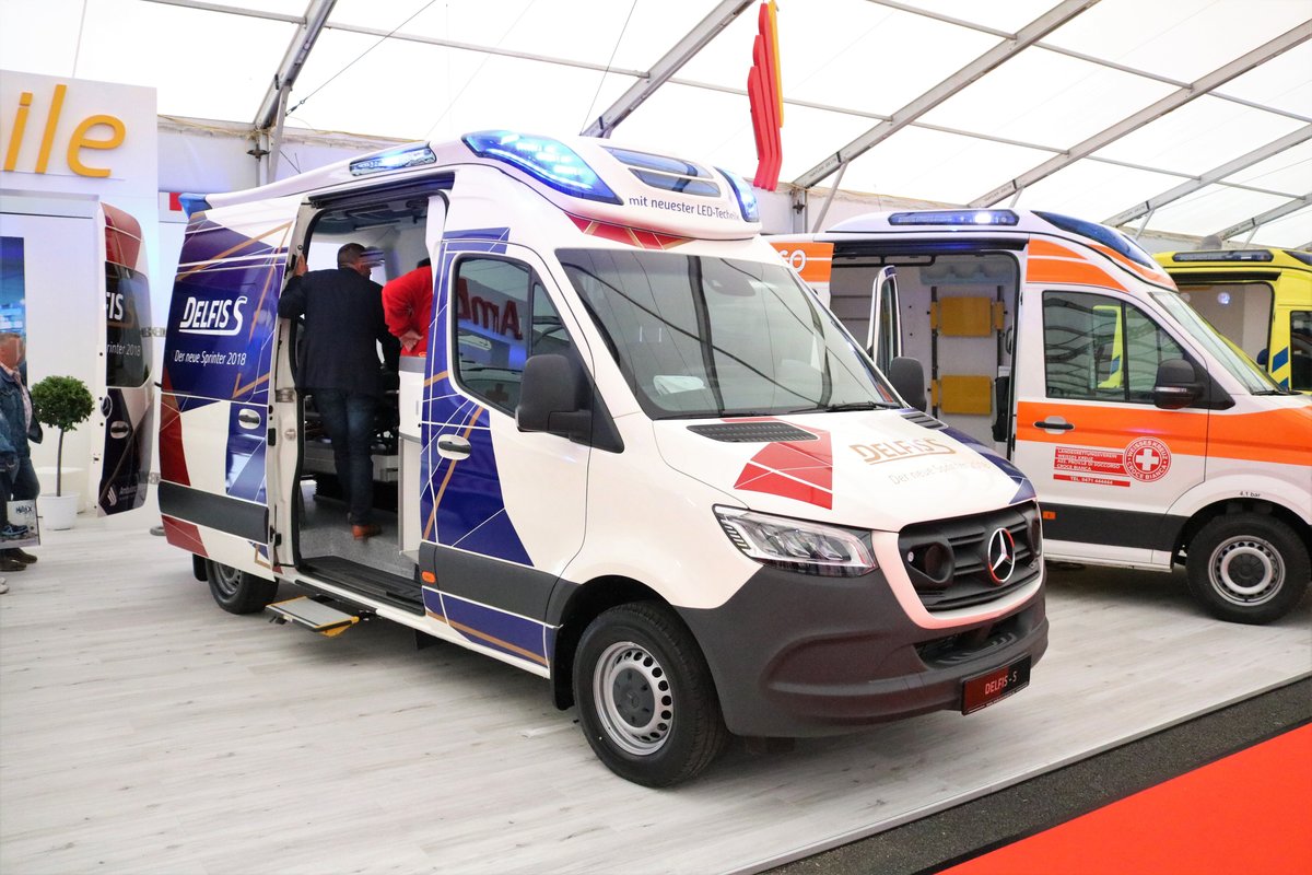 Neuer Mercedes Benz Sprinter RTW mit Fahrtec Aufbau am 18.05.18 auf der RettMobil in Fulda