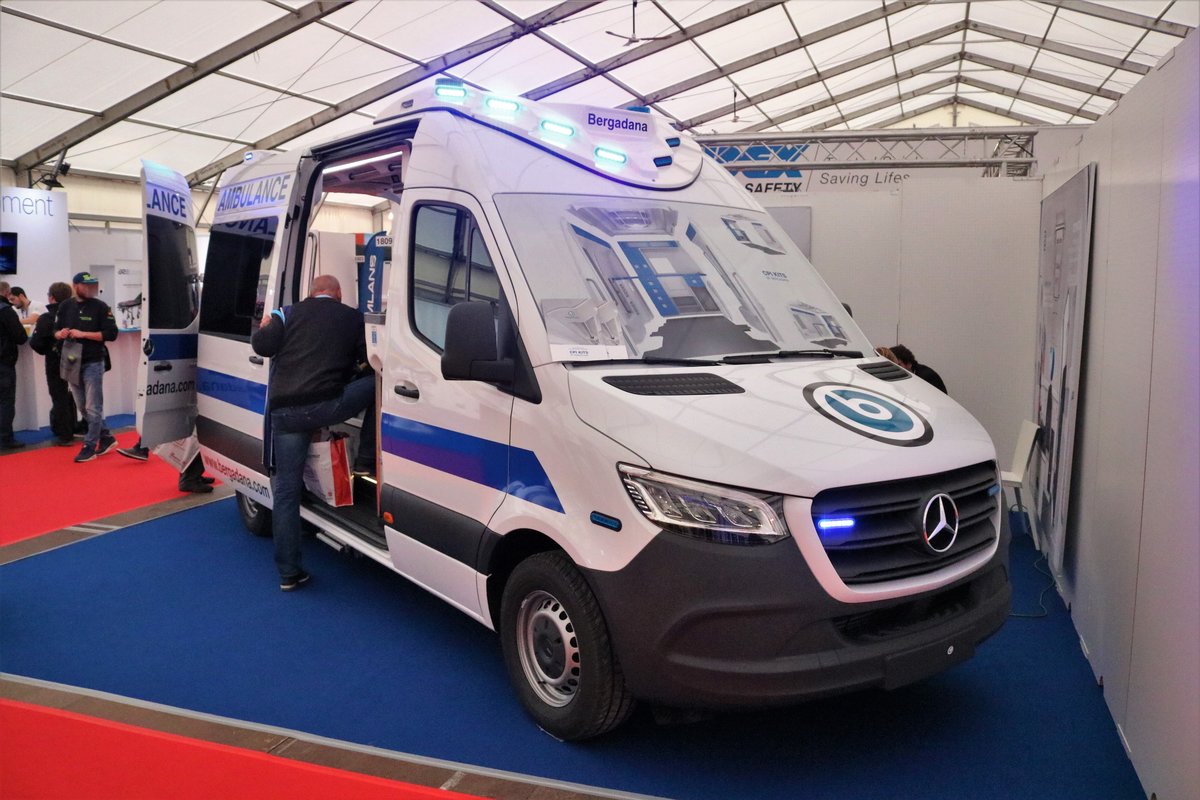 WAS Fahrzeugbau Mercedes Benz Sprinter RTW mit Elektroantrieb am 18.05.18 auf der RettMobil in Fulda