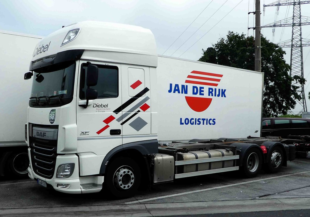 =DAF XF-Sattelzugmaschine steht im Mai 2018 auf dem Rasthof Fulda Nord