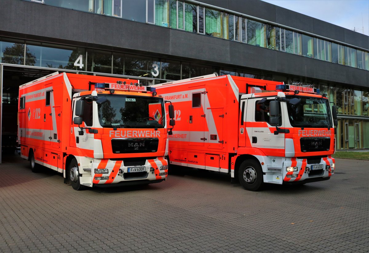 Berufsfeuerwehr Frankfurt am Main MAN TGM GW-AS1 (Florian 1/56-1) und MAN TGM GW-AS2 (Florian Frankfurt 1/56-2) am 31.10.18 an der Feuerwache 1 in Frankfurt bei einen spontanen Fototermin. Ich durfte Fotos zusammen mit einen Berufsfeuerwehrmann machen