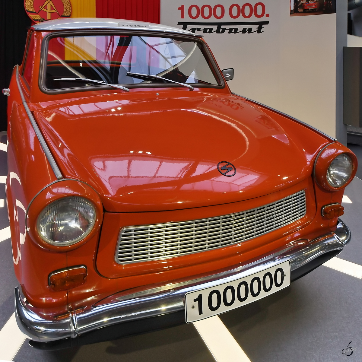Der 1.000.000te Trabant im korrekten sozialistischen Rot. (August Horch Museum Zwickau, August 2018)