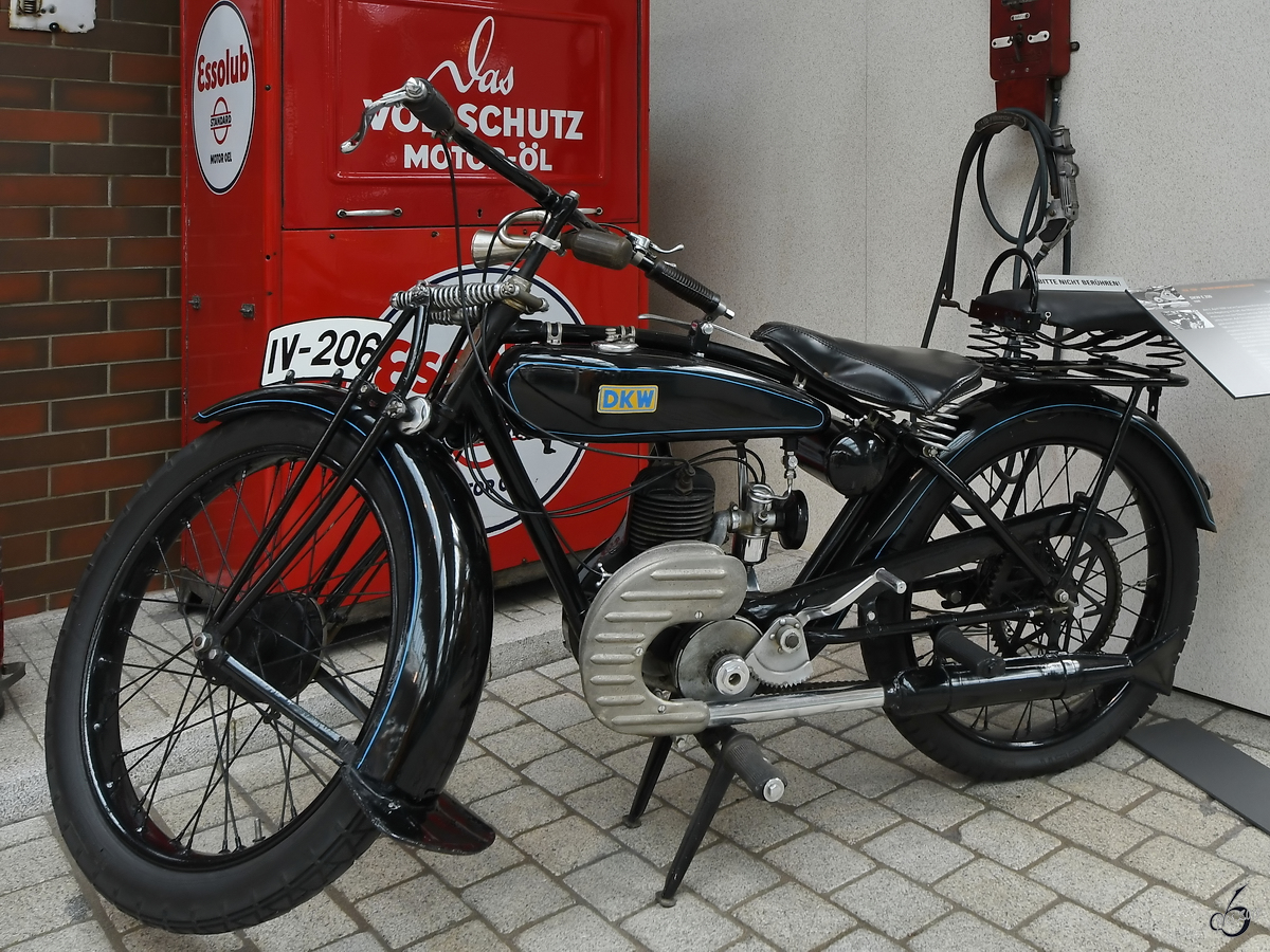 Ein Rennmotorrad DKW ARE 175 von 1927 stand im Automobilmuseum August Horch. (Zwickau, August 2018)