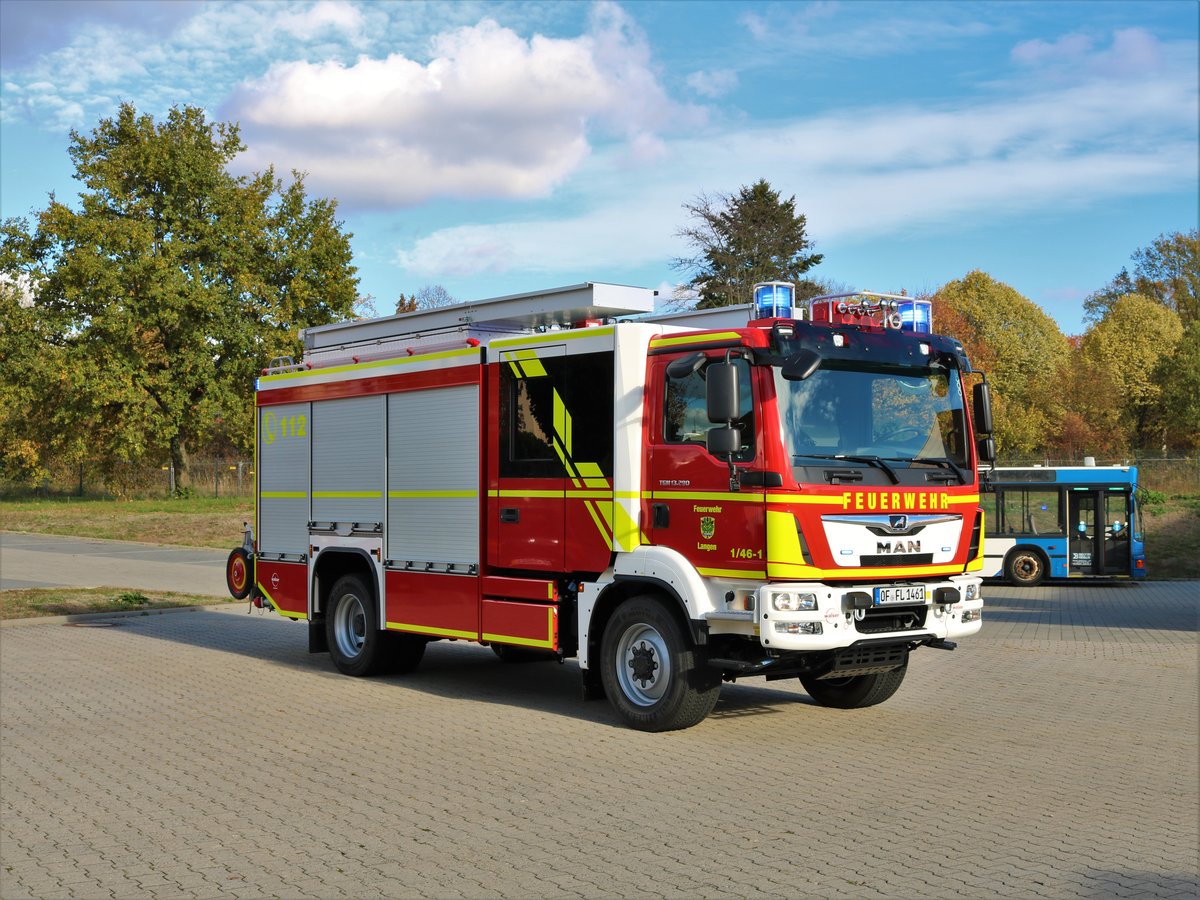 Feuerwehr Langen (Hessen) MAN TGM HLF20/16 (Florian Langen 1/46-1) am 02.11.18 bei einen Fototermin. Das Fahrzeug ist Neu und hat einen Aufbau von Walser