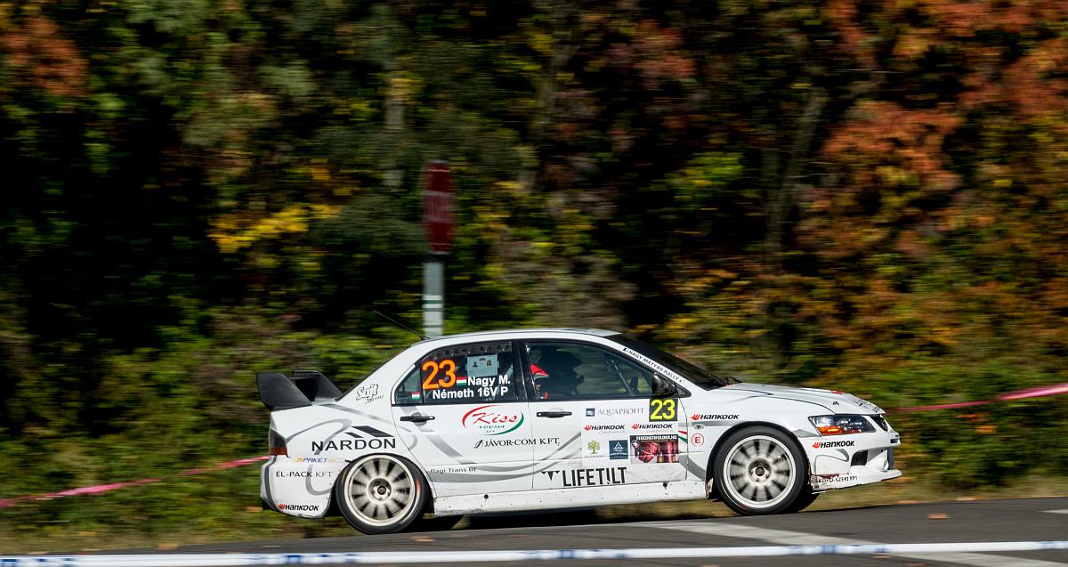 Mitsubishi Lancer Evo, fotografiert auf dem Mecsek Rallye, Oktober 2018.