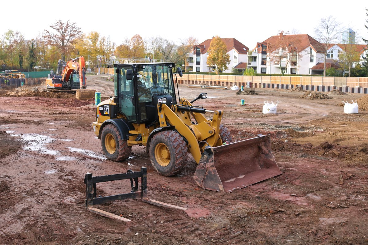 CAT 908M Radlader am 10.11.18 in Bad Vilbel durch den Zaun fotografiert