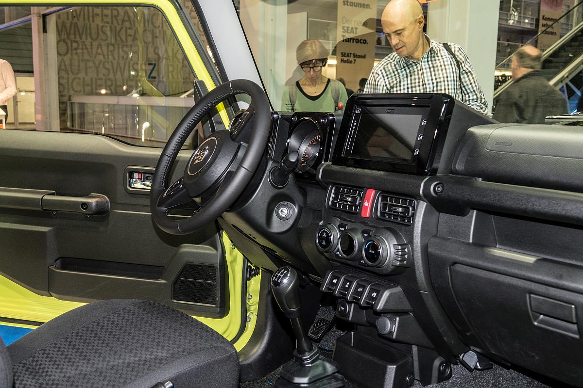 Interieur des neuen 2019-er Suzuki Jimny. Aufnahme: Auto Zürich 2018.