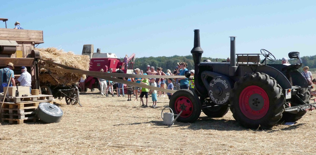 =Lanz steht zur nächsten Dreschvorführung am Baiersröder Hof im August 2018 bereit
