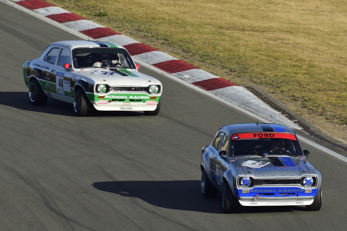 Ford Escort RS 1600 ccm1803, Bj.1971 Blau gegen Grün ,Ford Escort RS 1600 BDA, ccm 1803, Bj. 1971 im Rennen 7 - AvD-Tourenwagen- und GT Trophäe, 46. AvD-Oldtimer-Grand-Prix am 11.Aug2018