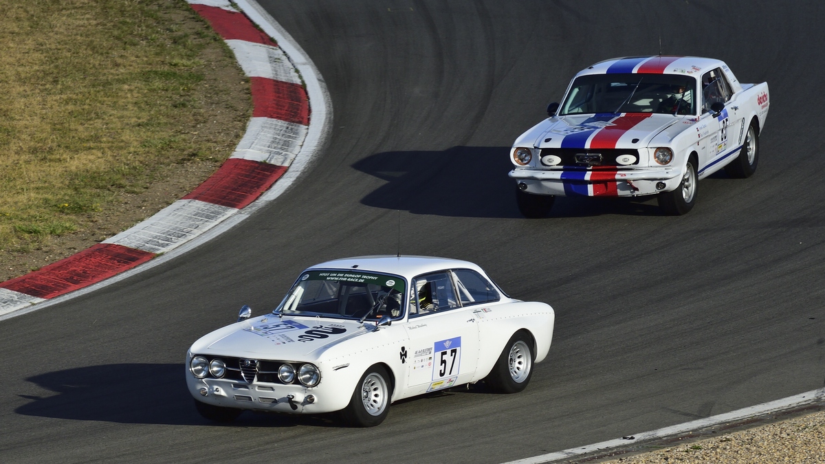 Ford Mustang gegen Alfa Romeo 1750 GTAm, im Rennen 7 - AvD-Tourenwagen- und GT Trophäe, 46. AvD-Oldtimer-Grand-Prix am 11.Aug2018