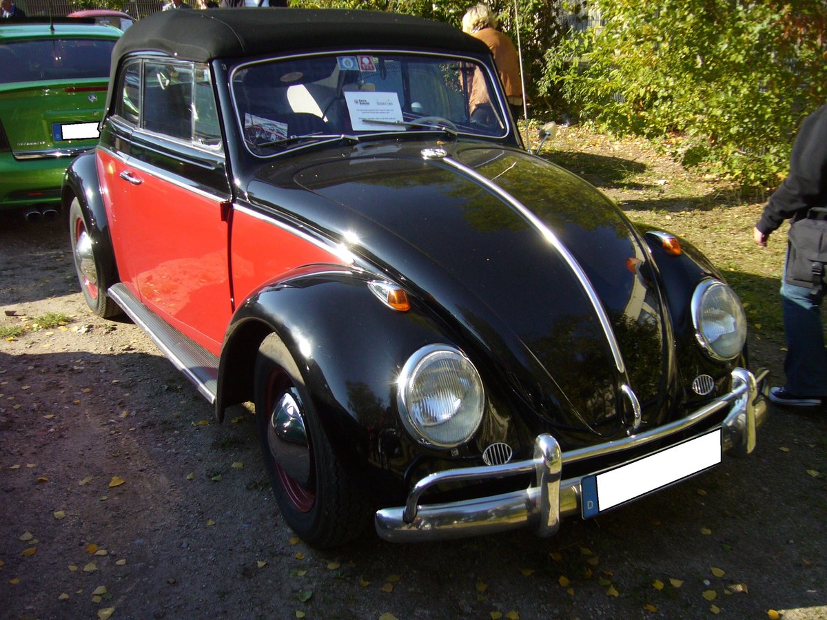 VW Typ 15 "Käfer Cabriolet des Modelljahres 1962. Der im Heck verbaute, luftgekühlte Vierzylinderboxermotor hat einen Hubraum von 1192 cm³ und leistet 30 PS. Oldtimertreffen an der Niebu(h)rg in Oberhausen am 07.10.2018.