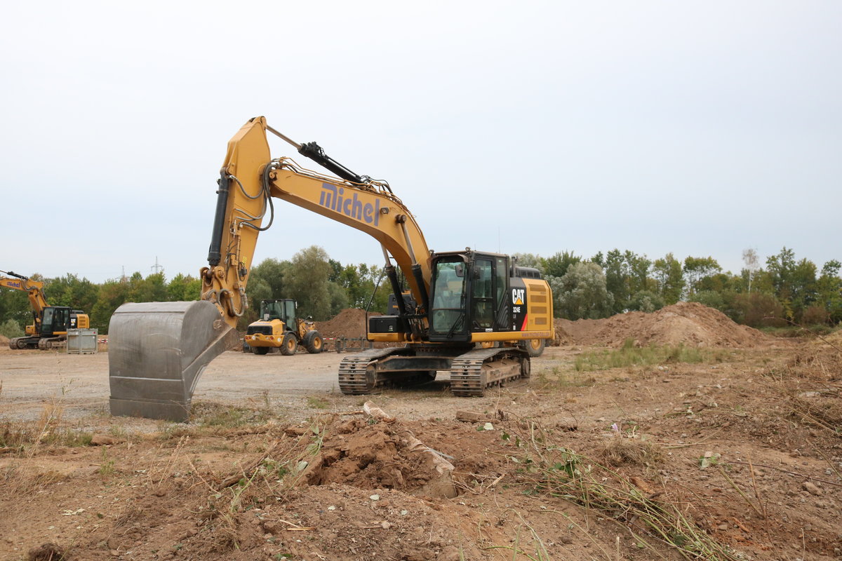 CAT 324E Rauppenbagger am 13.09.18 bei Kleinostheim durch den Zaun fotografiert