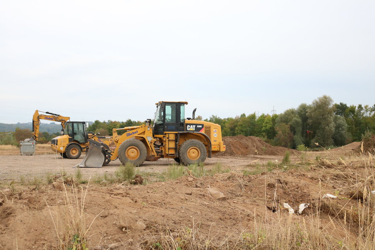 CAT 938H Radlader am 13.09.18 bei Kleinostheim durch den Zaun fotografiert