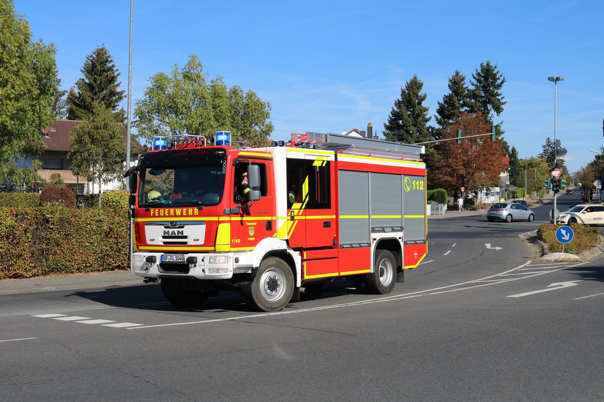 Feuerwehr Langen MAN TGM Staffellöschfahrzeug (StLF 20/25) (Florian Langen 1/40) am 16.09.18 bei einer Katastrophenschutzübung in Rödermark Urberach