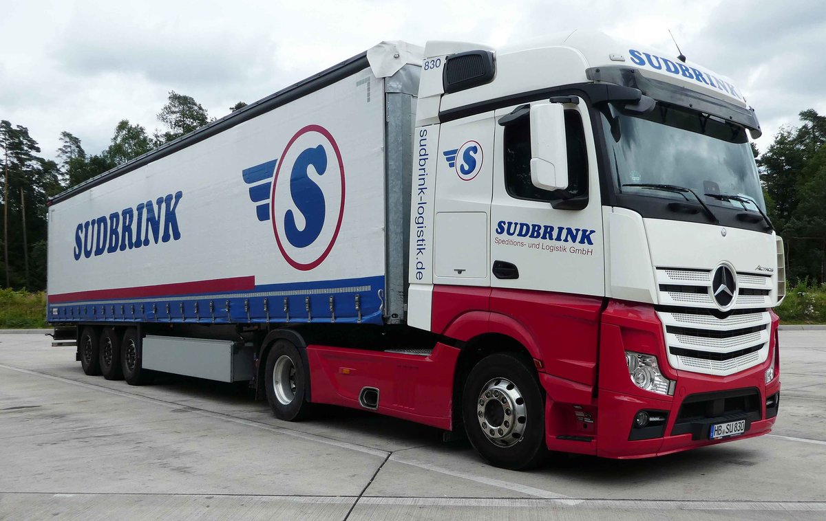 =MB Actros der Spedition SUDBRINK rastet im Juni 2018 an der A 7
