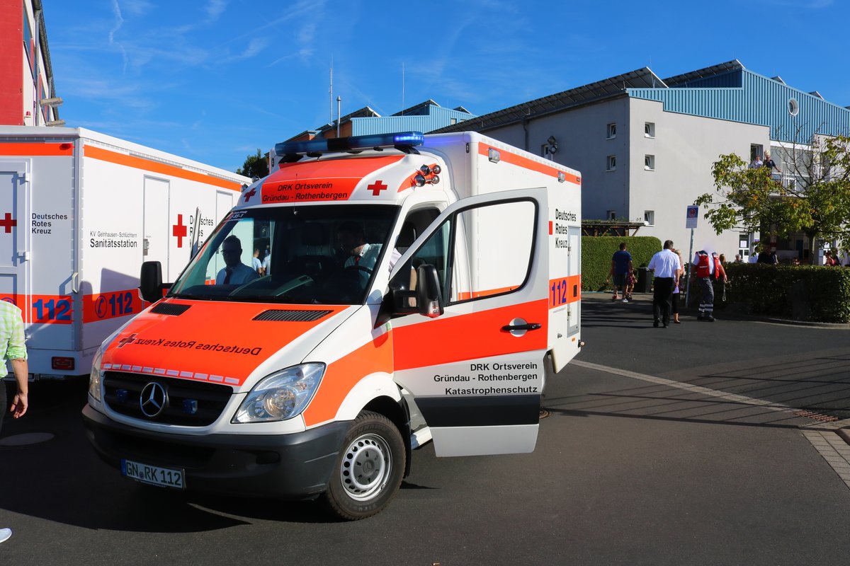 DRK Main Kinzig Kreis Kreisverband Gelnhausen Mercedes Benz Sprinter RTW (Main Kinzig 15-85-) am 16.09.18 beim Tag der offenen Tür