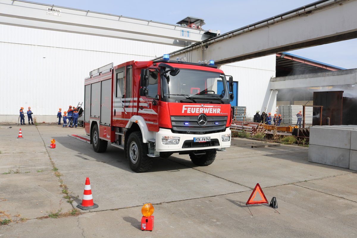 Feuerwehr Hochheim Mercedes Benz Atego LF110 (Florian Hochheim am Main 1/43) bei einer Jugendfeuerwehr Übung des Main Taunus Kreis am 22.09.18 in Okriftel