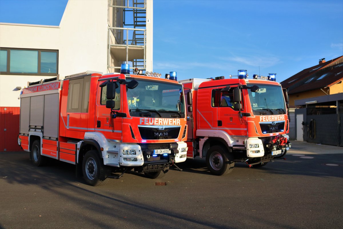 Feuerwehr Kleinostheim MAN TGM HLF20 (Florian Kleinostheim 40/1) und MAN TGM TLF3000 (Florian Kleinostheim 21/1) bei einen Fototermin am 20.09.18 in der nähe von Kleinostheim