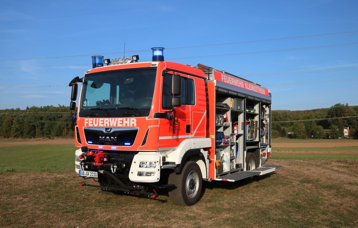 Feuerwehr Kleinostheim MAN TGM TLF3000 (Florian Kleinostheim 21/1) bei einen Fototermin am 20.09.18 in der nähe von Kleinostheim
