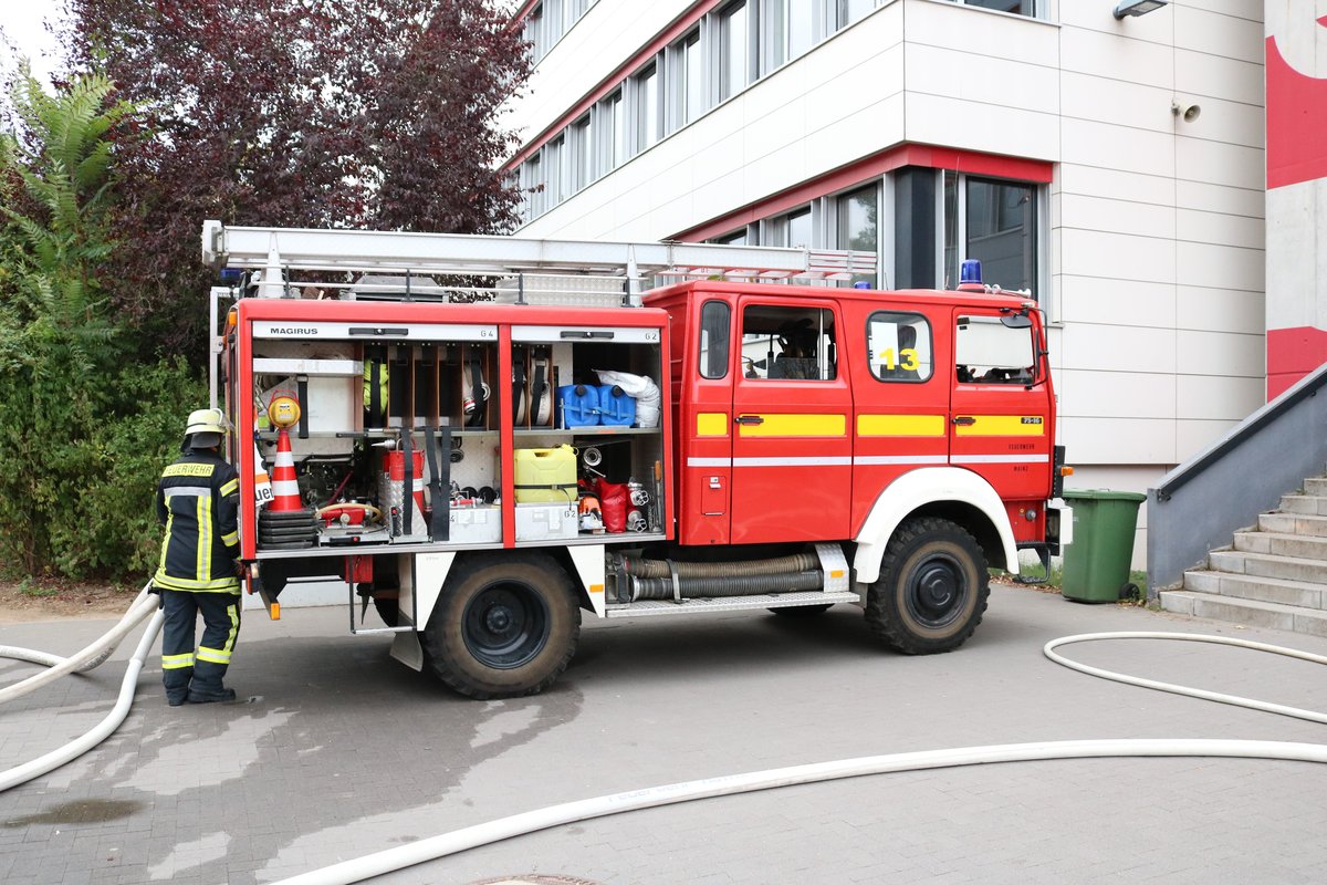 Feuerwehr Mainz Mercedes Benz LF8/12 (Florian Mainz 20/44) am 22.09.18 einer Jugendfeuerwehr Großübung an der Otto Schott Schule in Gonsenheim