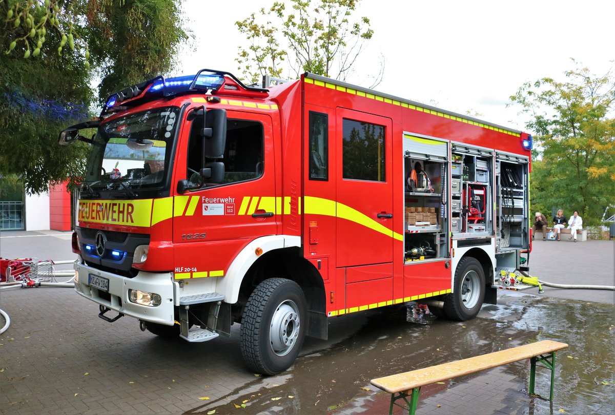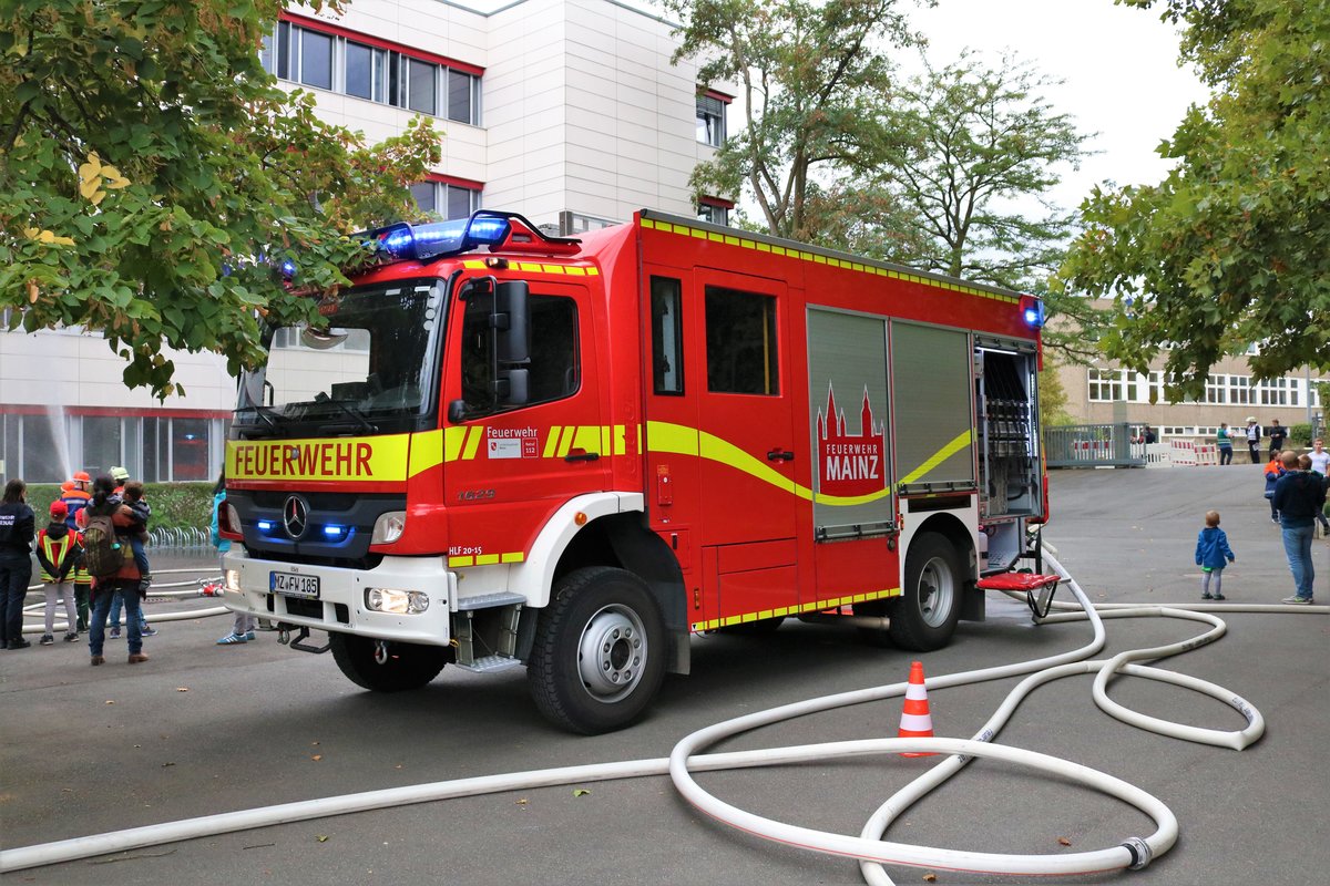 Feuerwehr Mainz Mercedes Benz Atego HLF20/16 (Florian Mainz 19/49) am 22.09.18 einer Jugendfeuerwehr Großübung an der Otto Schott Schule in Gonsenheim