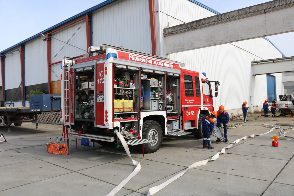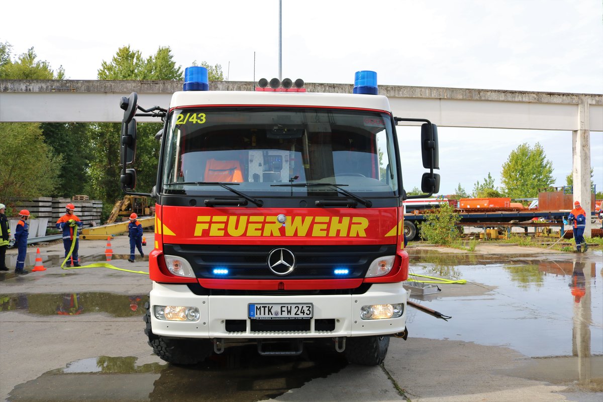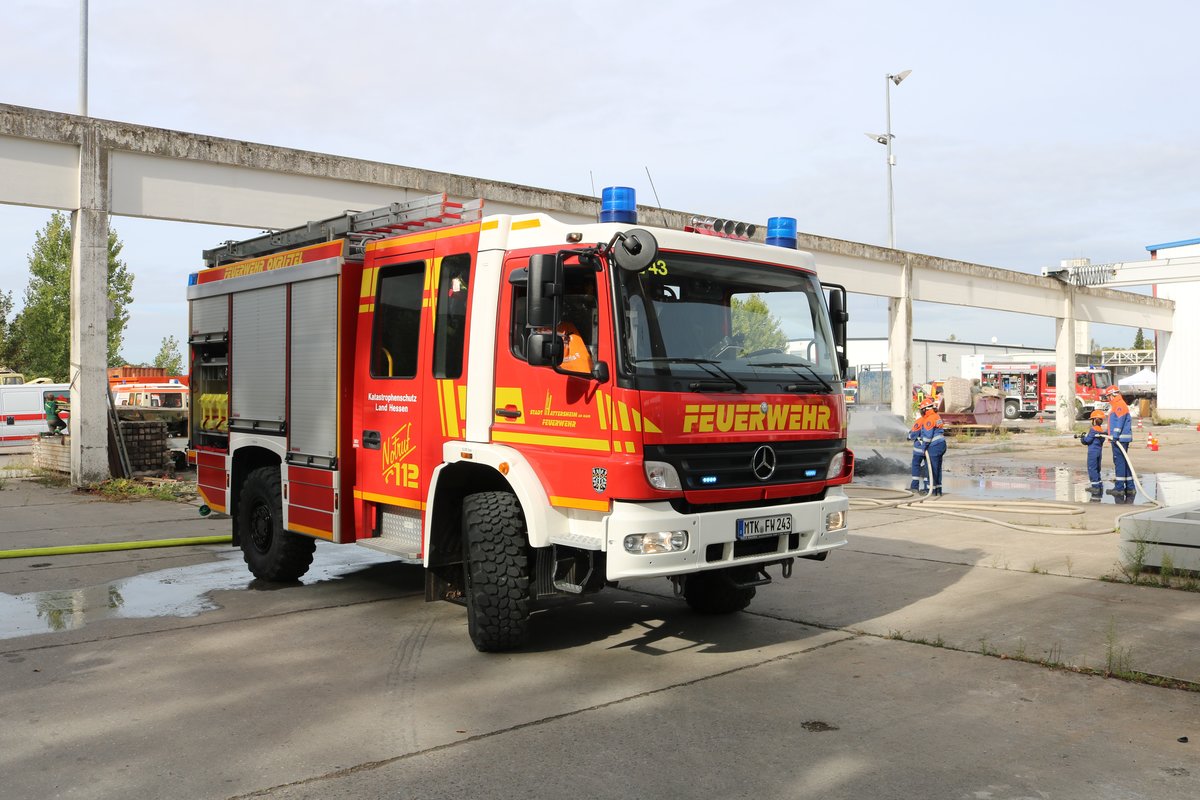 Feuerwehr Massenheim Mercedes Benz Atego LF10/6 (Florian Hochheim am Main 2/43) bei einer Jugendfeuerwehr Übung des Main Taunus Kreis am 22.09.18 in Okriftel