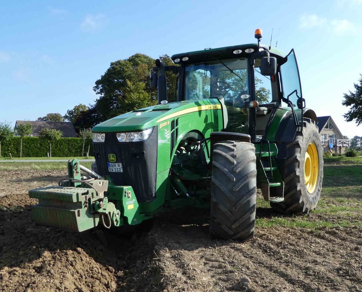 =John Deere 8335 R bei Pflügearbeiten in der Nähe von Kalkhorst im September 2018