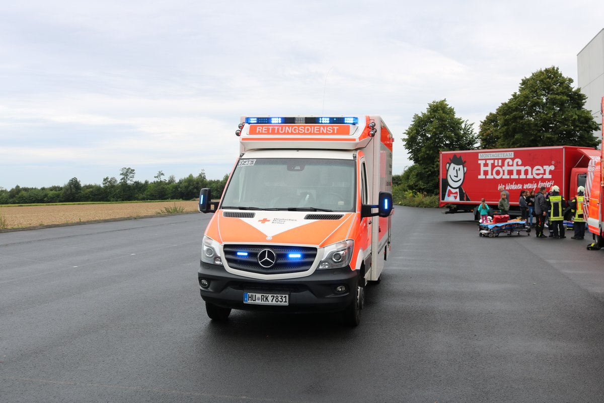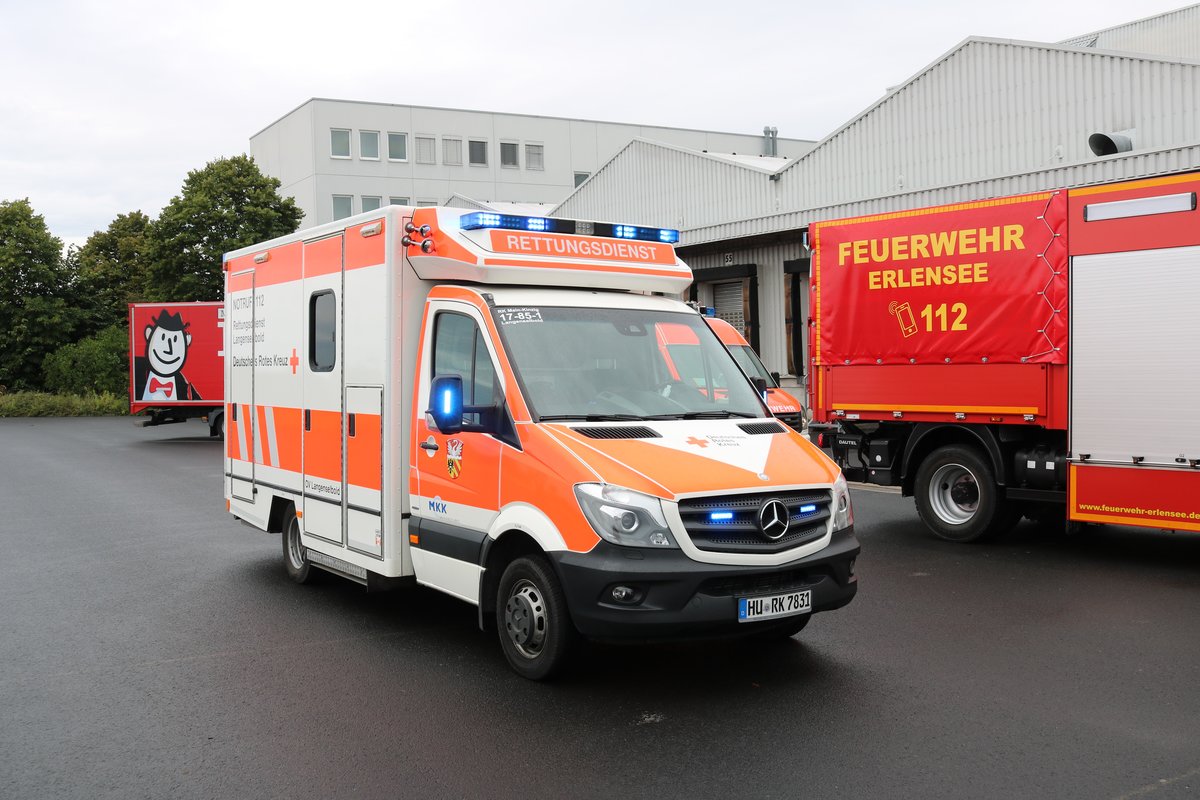 DRK OV Langenselbold Mercedes Benz Sprinter RTW und Feuerwehr Erlensee MAN TGM GW-L am 17.08.19 bei einer Jugendfeuerwehrübung