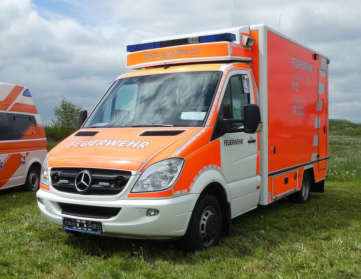 =MB Sprinter von Ambulance Wiesbaden bei einem Feuerwehreinsatz in Wiesbaden im Juni 2019