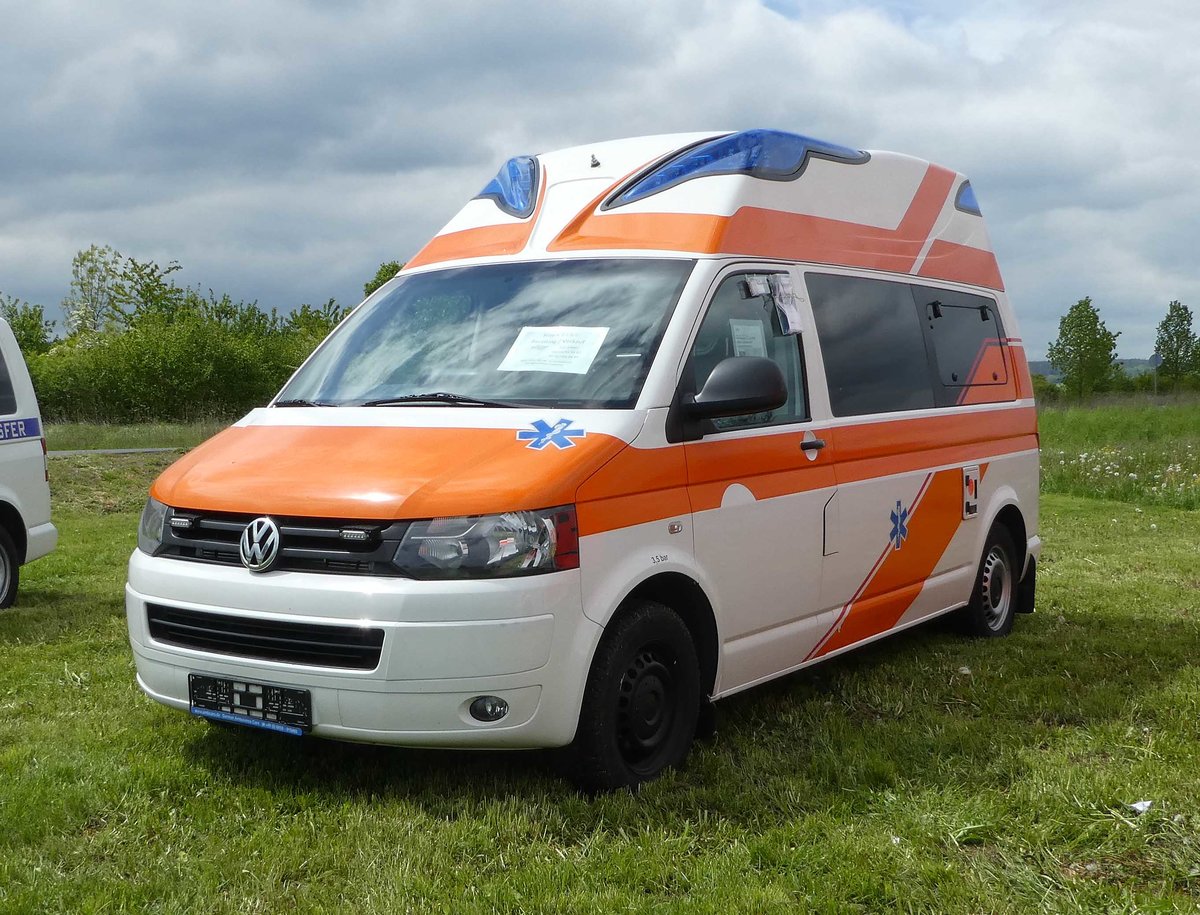 =VW T5 der JOHANNITER, steht auf dem Parkplatz der Rettmobil 2019 in Fulda, 05-2019