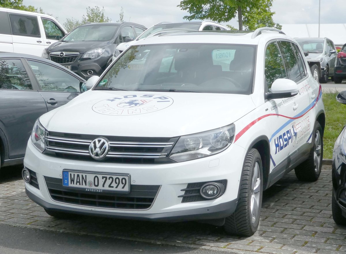=VW Tiguan von "HospiTrans" steht auf dem Parkplatz der Rettmobil 2019 in Fulda, 05-2019