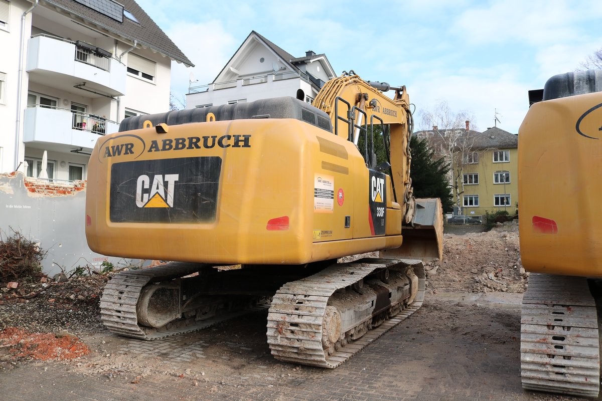 AWR Abbruch CAT 330F am 23.12.19 in Wiesbaden durch den Zaun fotografiert