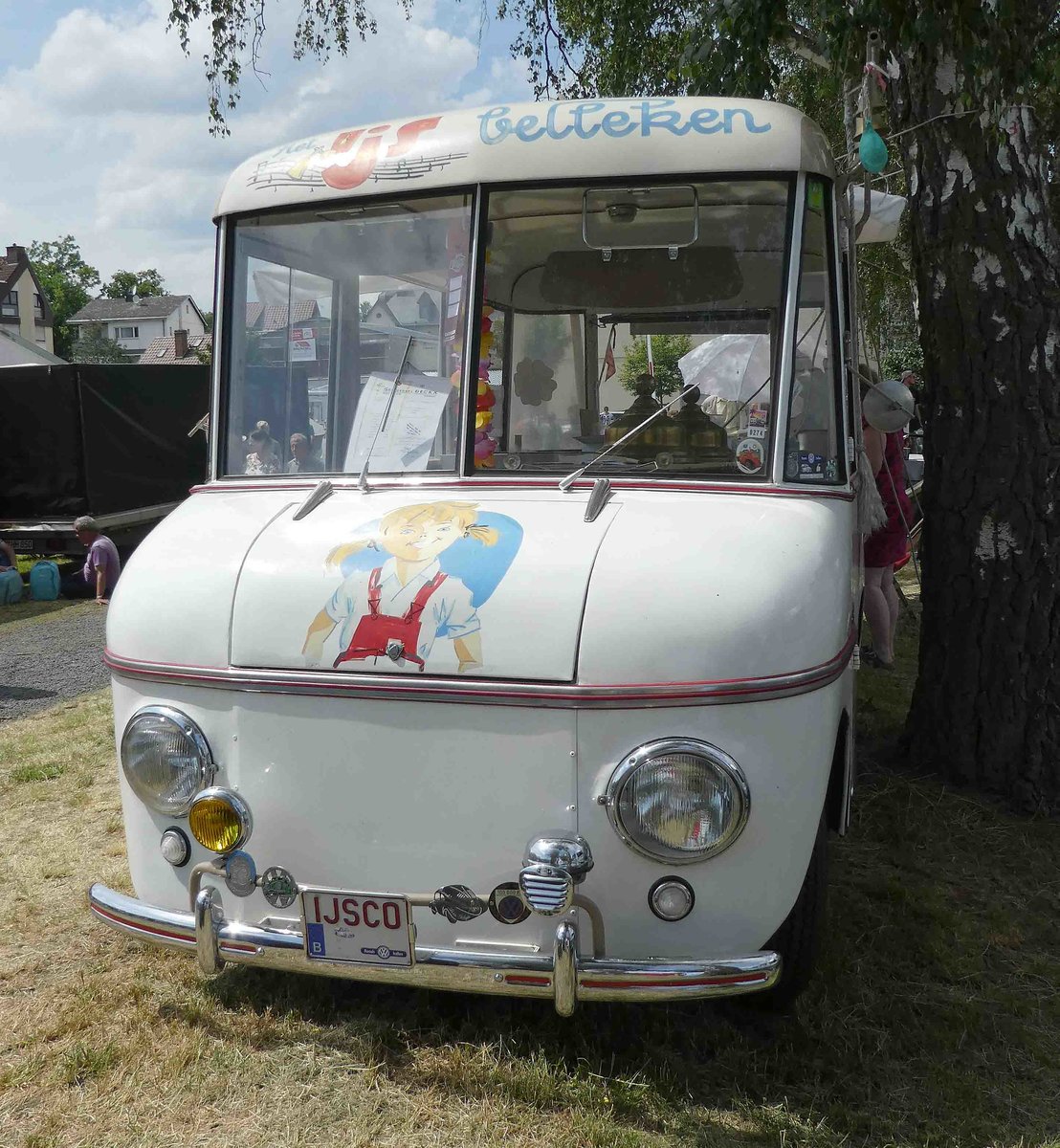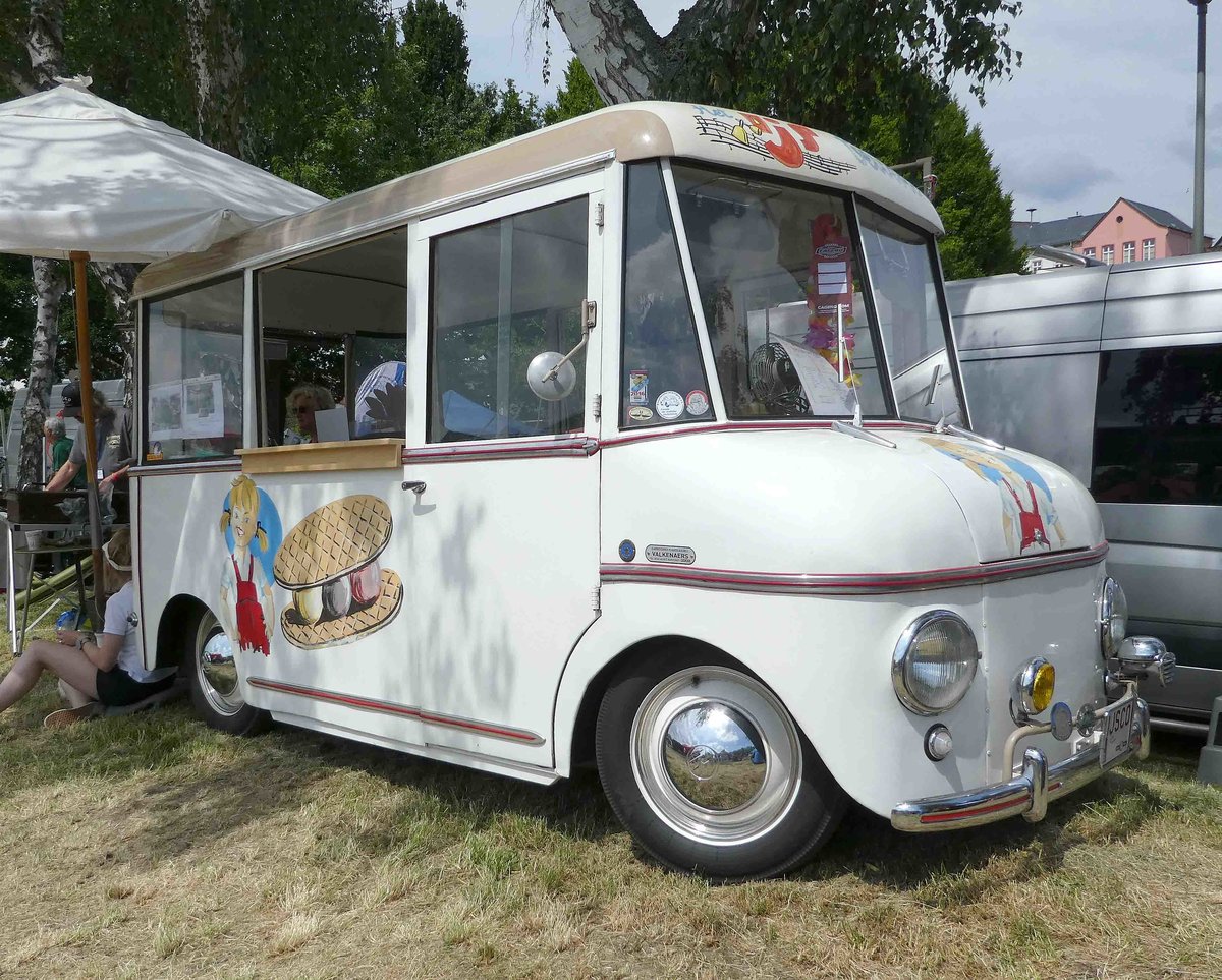 =Eiswagen des Karosseriebauers VALKENAERS aus Belgien. 4 Fahrzeuge, auf Basis des VW Käfer, wurden von dem Karosseriebauer um 1962 gefertigt. Gesehen auf dem Ausstellungsgelände in Bad Camberg anl. LOTTERMANN-Bullitreffen im Juni 2019.