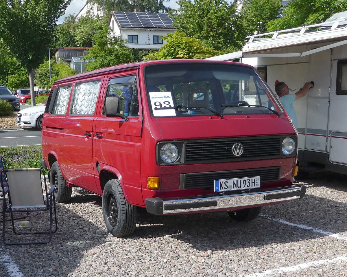 =VW T3 steht bei der Oldtimerveranstaltung in Gudensberg im Juni 2019