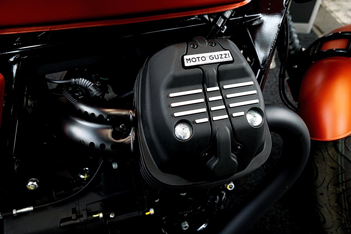 Detaifoto des Ventildeckels einer Moto Guzzi V9 Bobber Sport. Foto: Berliner Motorrad Tage, BMT, 08.02.2019