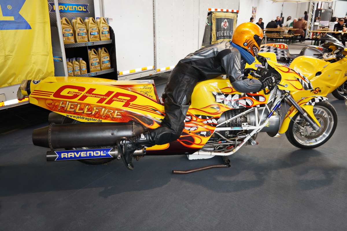 Jet-Bike. Antrieb: General Electric T-58 Hubschrauberturbine mit einer Leistung von 3500PS. Beschleunigung: ca.7 Sekunden auf 350km/h. Foto: Berliner Motorrad Tage, BMT, 08.02.2019