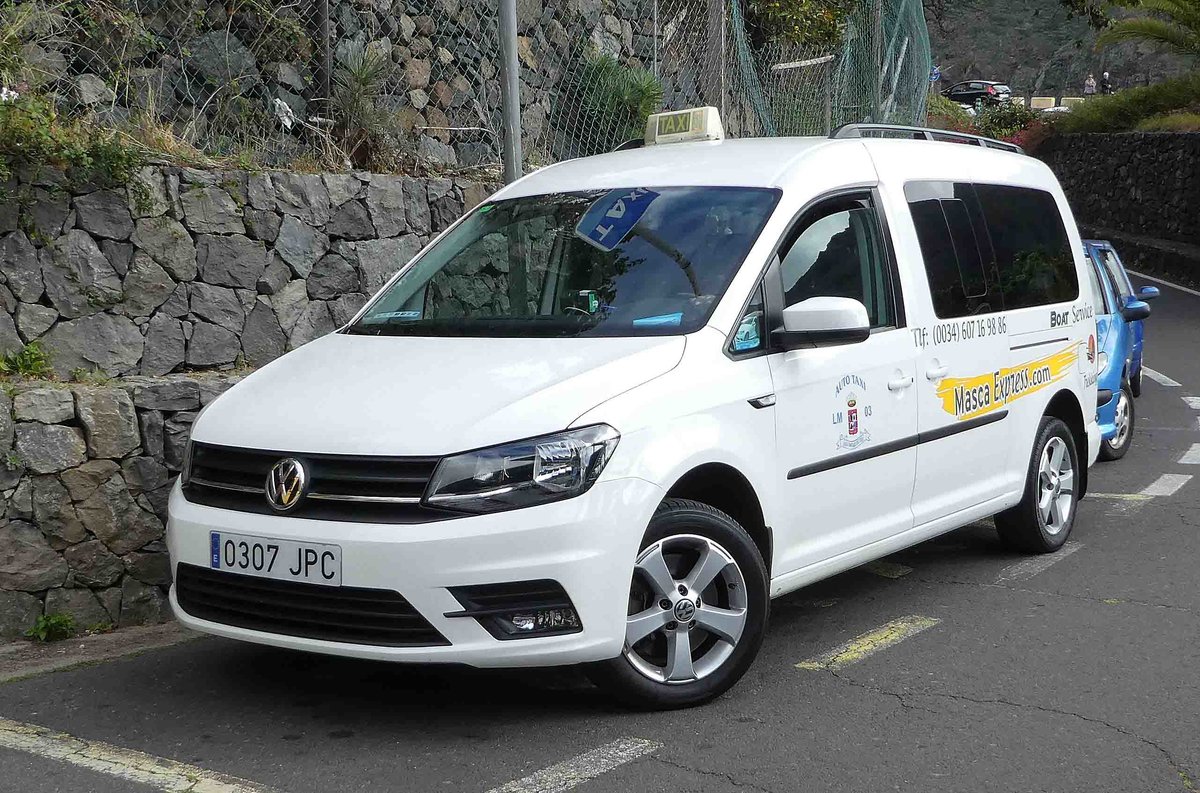 =VW Caddy als Taxi steht am Loro-Parque/Teneriffa, 01-2019