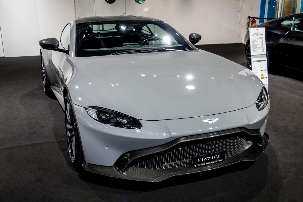 2018-er Aston Martin Vantage, ausgestellt auf der Auto Zürich, November 2018.