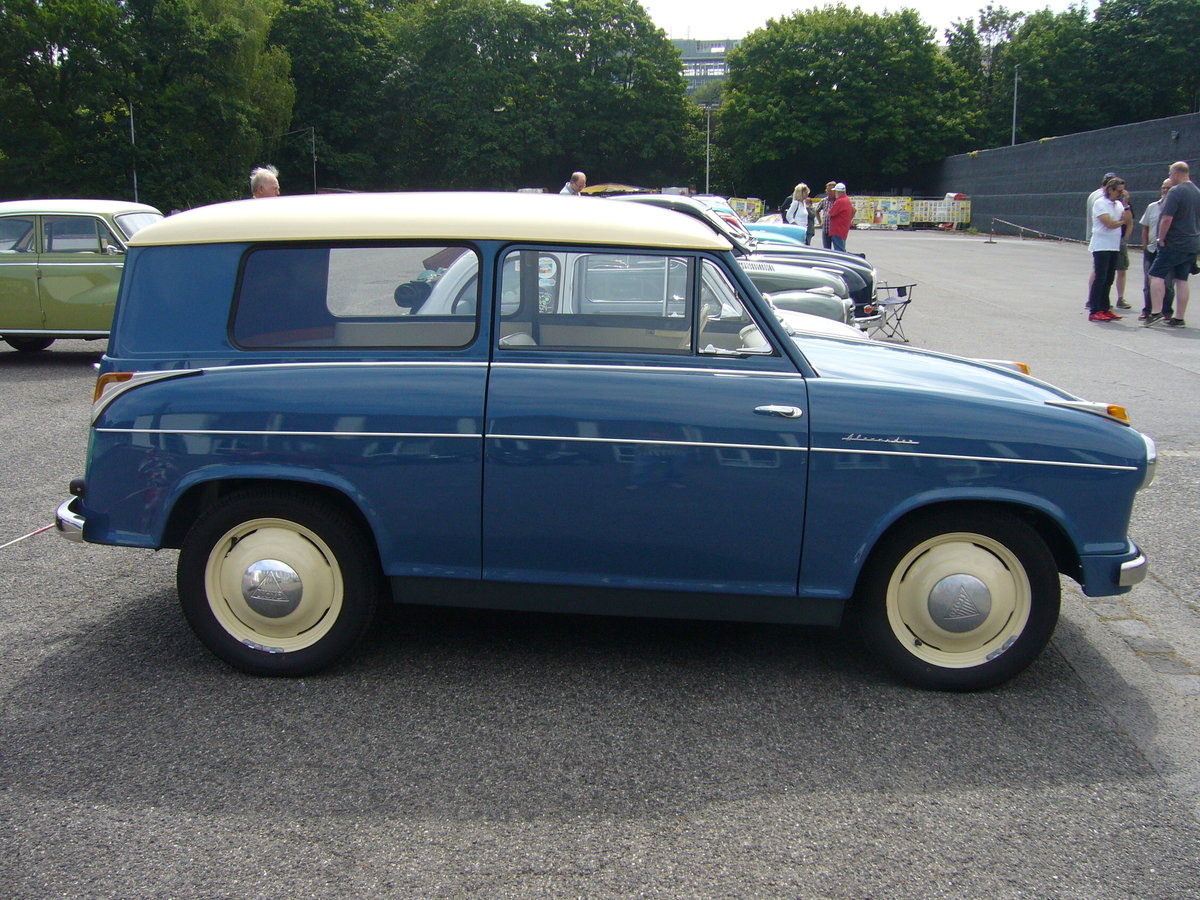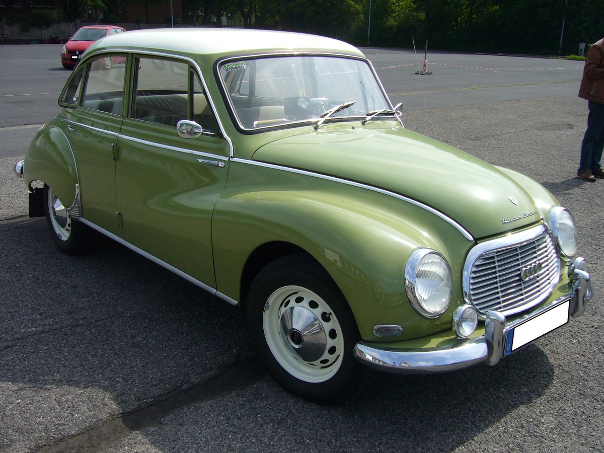 DKW Auto Union 1000S, in der seltenen Ausführung als viertürige Limousine. Als viertürige Limousine wurde dieses Modell nur im Jahr 1959 produziert. Ein solcher DKW 1000 kostete bei seiner Vorstellung DM 7225,00. Dafür erhielt der Käufer einen geräumigen Wagen mit einem Dreizylinderzweitaktmotor. Dieser Motor hat einen Hubraum von 980 cm³ und leistet 44 PS. Die Höchstgeschwindigkeit liegt bei 130 km/h. Kleinwagentreffen an Mo´s Bikertreff in Krefeld am 20.06.2019.